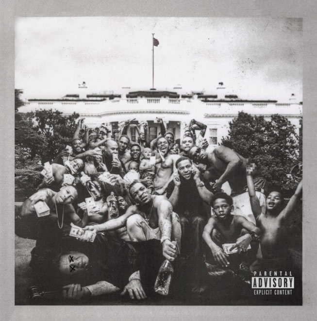 Lamar’s rap technique is lithe and often jaw-dropping. He modulates his vocal pitch to assume the roles of different characters on different verses, flipping from vulnerability to brash contempt with the slightest change in intonation and cadence. Kendrick shifts gears like a Ferrari on congested city streets, accelerating, cornering, contorting his coarse drawl around multisyllabic, internal rhymes with power and finesse. On “Momma,” even his bookishness dazzles: “The mind of a literate writer, but I did it in fact/ You admitted it once I submitted it wrapped in plastic/ Remember scribblin’ scratchin’ dilligent sentences backwards/ Visiting freestyle cyphers for your reaction/ Now I can live in a stadium, pack it the fastest.” His flow, coupled with superb storytelling skills and keen literary acumen, borders on peerless.